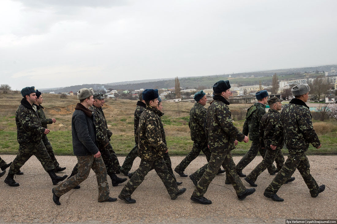 С одной стороны, требование абсурдное. Сами посудите, к воинской части независимого государства приходят вооруженные до зубов солдаты и просят сдаться. «Оккупанты!» - скажете вы. Но большинство местных жителей скорее назовут «оккупантами» украинских военных. Все оцепления происходят при поддержке местных жителей, которые и уговаривают солдат перейти на сторону новой крымской власти. Большинство так и делает. Во всем Крыму сопротивляются, по-моему, только 2-4 части.