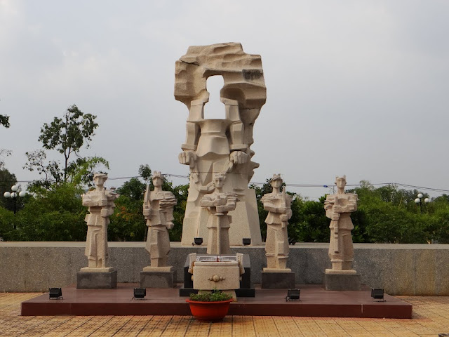 mặt tiền vào bên trong quan khách thấy ngay bên phải là cụm tượng đài bất khuất,