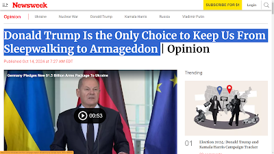 Kính mời những ai biết tiếng Anh, xin hãy đọc bài viết vừa đăng trên báo Newsweek (Hoa Kỳ) với tiêu đề Donald Trump Is the Only Choice to Keep Us From Sleepwalking to Armageddon – Dịch: Donald Trump là lựa chọn duy nhất giúp chúng ta tránh khỏi cảnh mộng du đến ngày tận thế